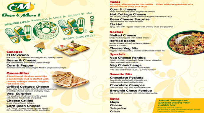 Chips & More!® is a registered brand of the company and successfully operates in prominent places in Pune and primarily offers popular Tex-Mex products.